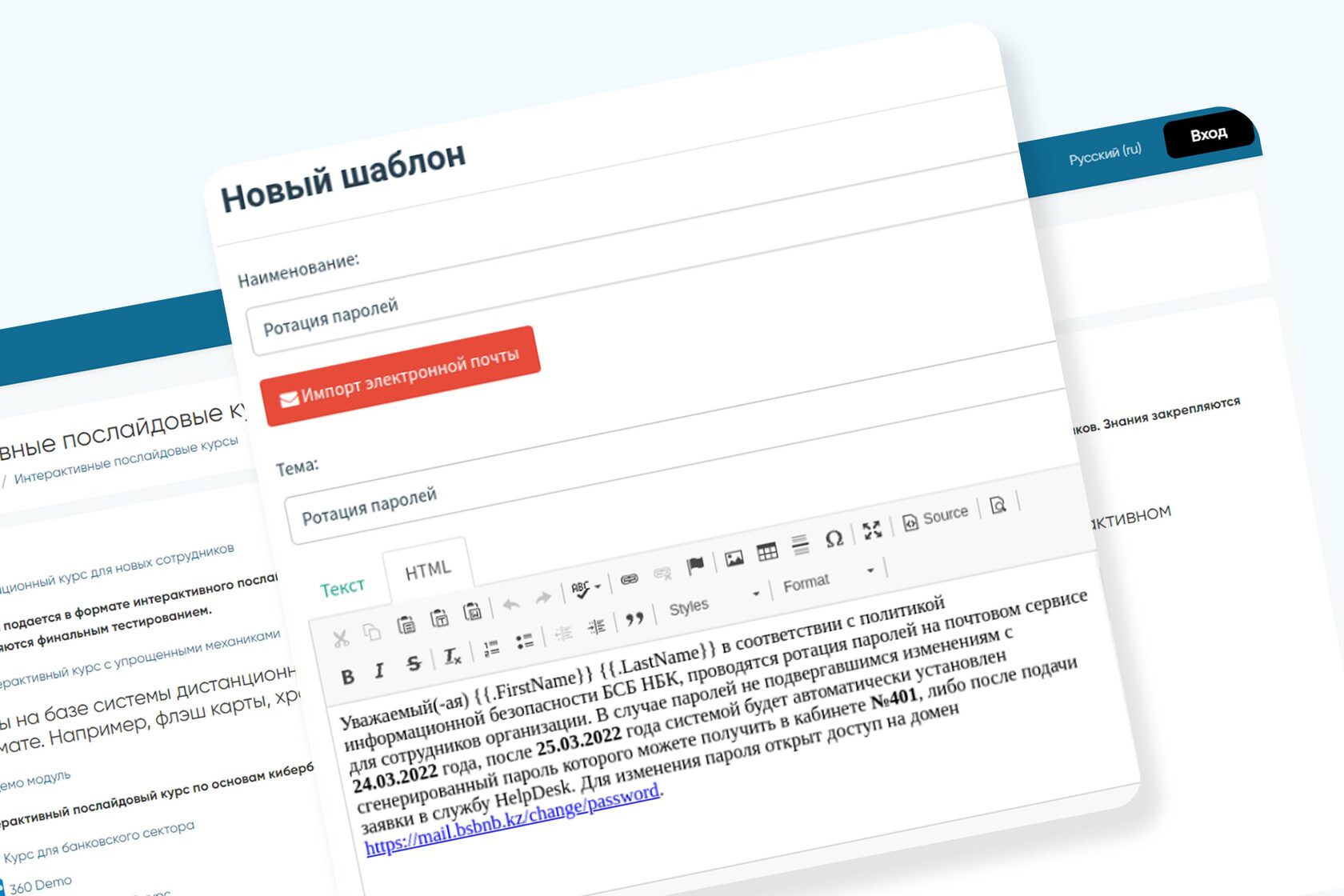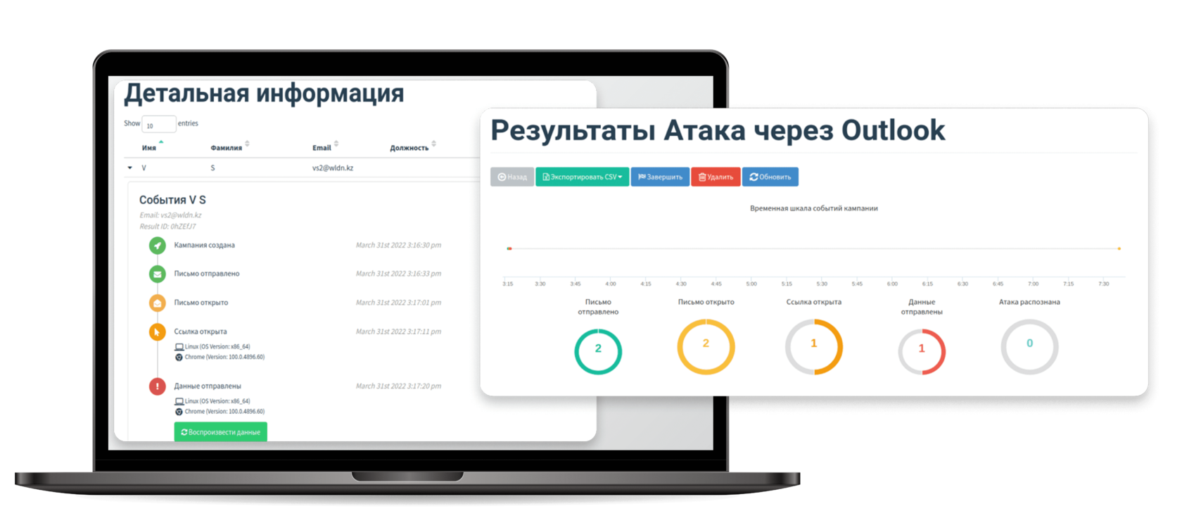 Инструмент для создания фишинговых кампаний, шаблонов рассылки и просмотра отчетов о компаниях.
